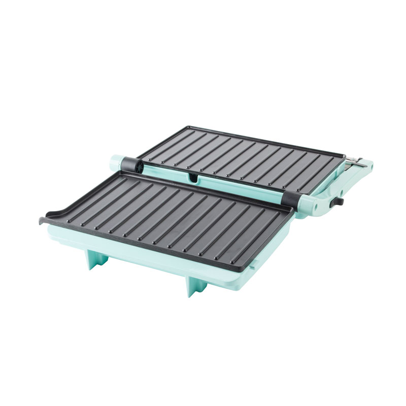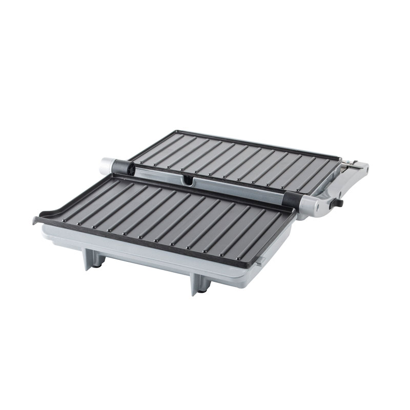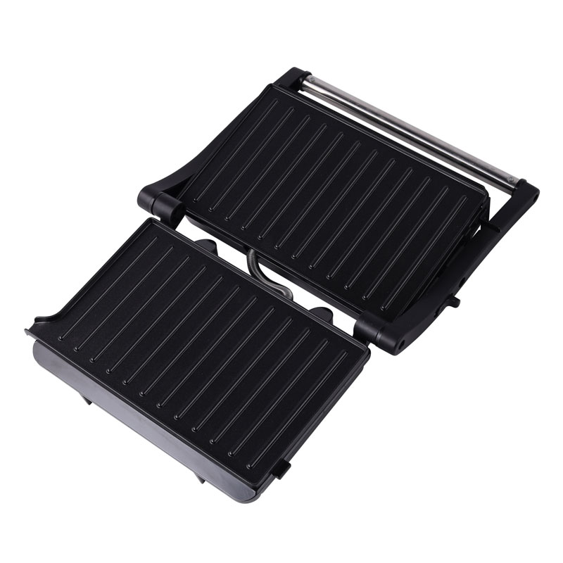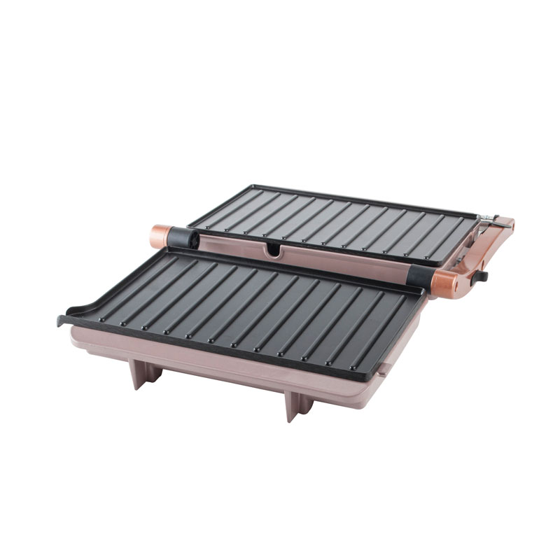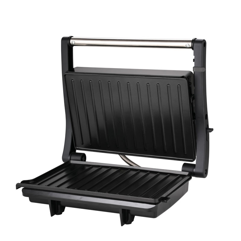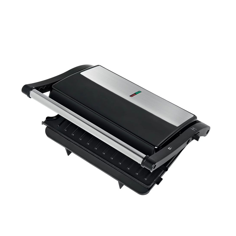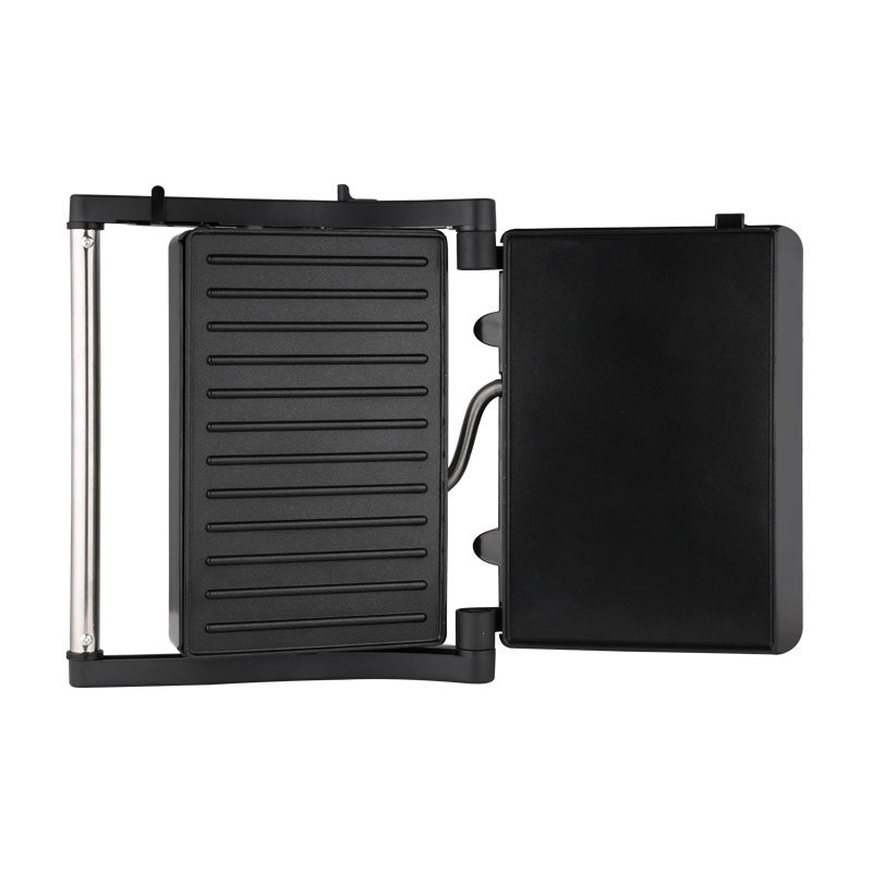| Toiminnalliset ydinominaisuudet | Elintarvikelaatuinen tarttumaton pinnoitelevy, mukautuva kelluva sarana, 180° täysin avoin grilli, viileä kosketuspalamisenestokahva, sisäänrakennettu öljytippakeräys, virran päälle- ja esilämmitysvalot |