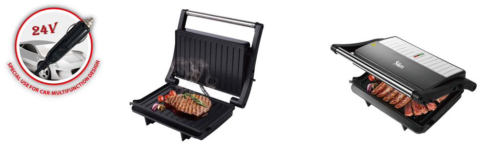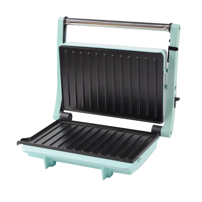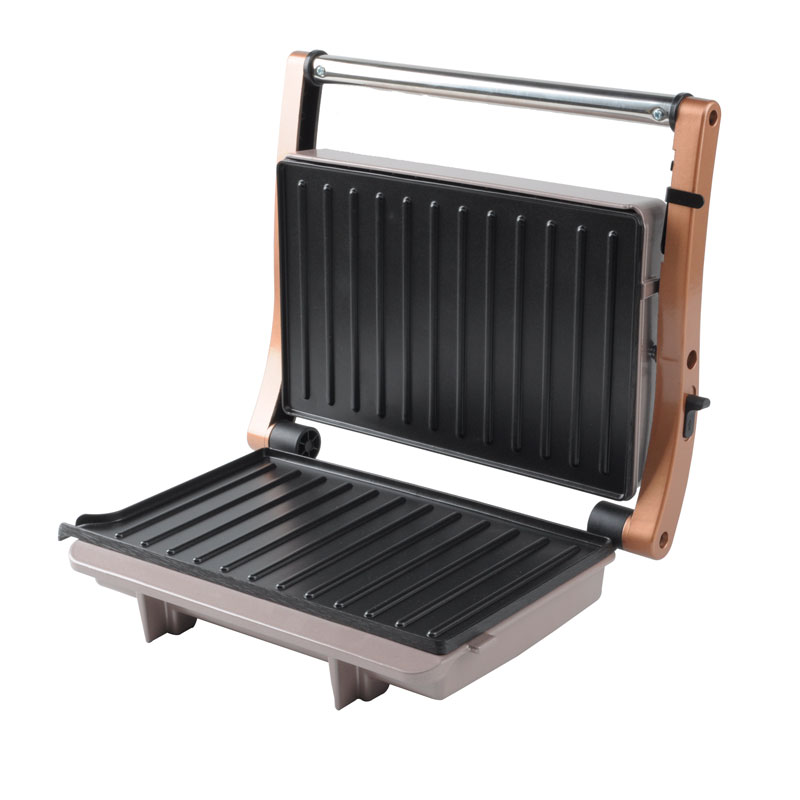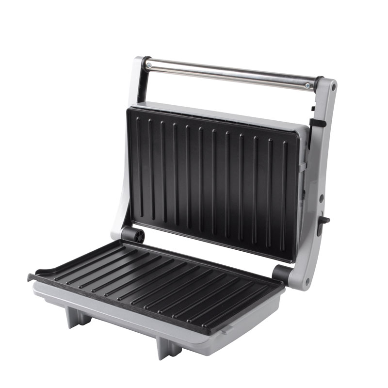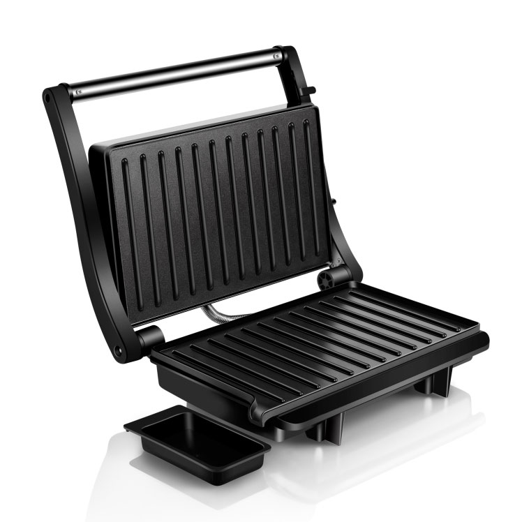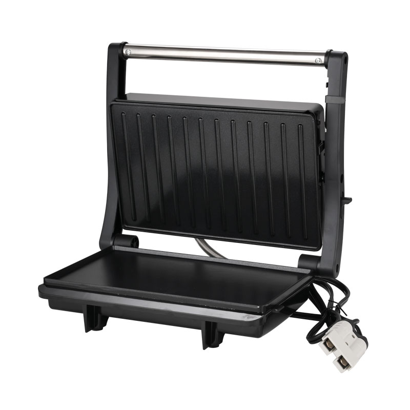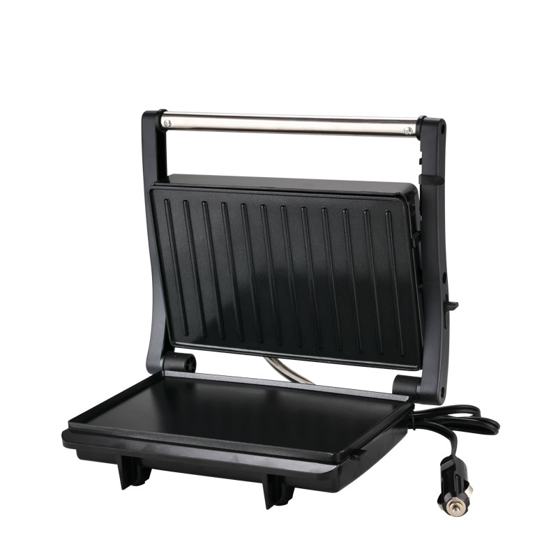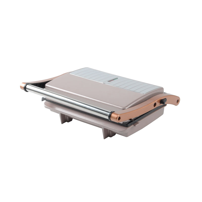 | Toiminnalliset ydinominaisuudet | Elintarvikelaatuinen tarttumaton pinnoitelevy, mukautuva kelluva sarana, 180° täysin avoin grilli, viileä kosketuspalamisenestokahva, sisäänrakennettu öljytippakeräys, virran päälle- ja esilämmitysvalot |